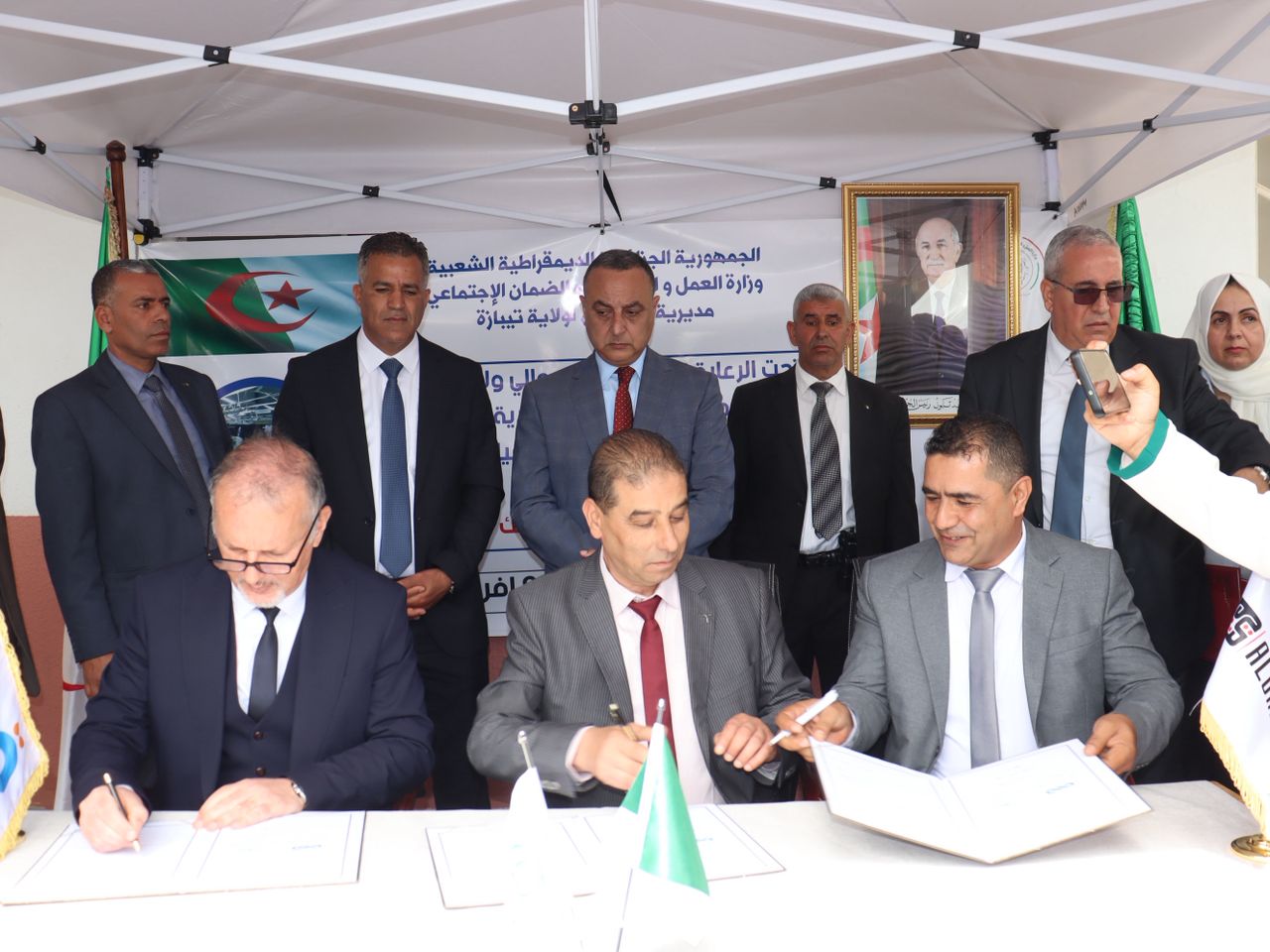 ▪️ اتفاقية (تكوين، تحسين المؤهلات، تموين وتوظيف) بين الفرع الولائي للتشغيل ومديرية التكوين والتعليم المهنيين ومؤسسة “غيث”، المكلفة بإنجاز 1000 مسكن عدل بموقع سيدي عمر.