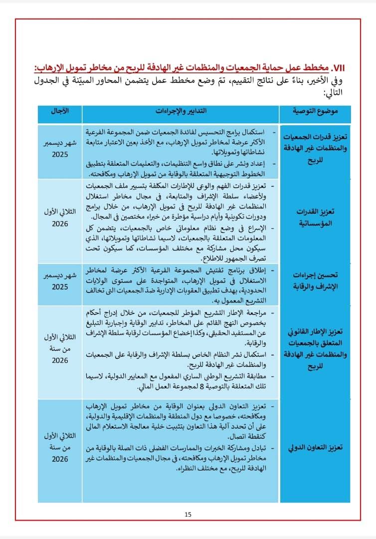 ملخص تقرير تقييم مخاطر استغلال قطاع الجمعيات و المنظمات غير الهادفة للربح في تمويل الإرهاب في الجزائر.