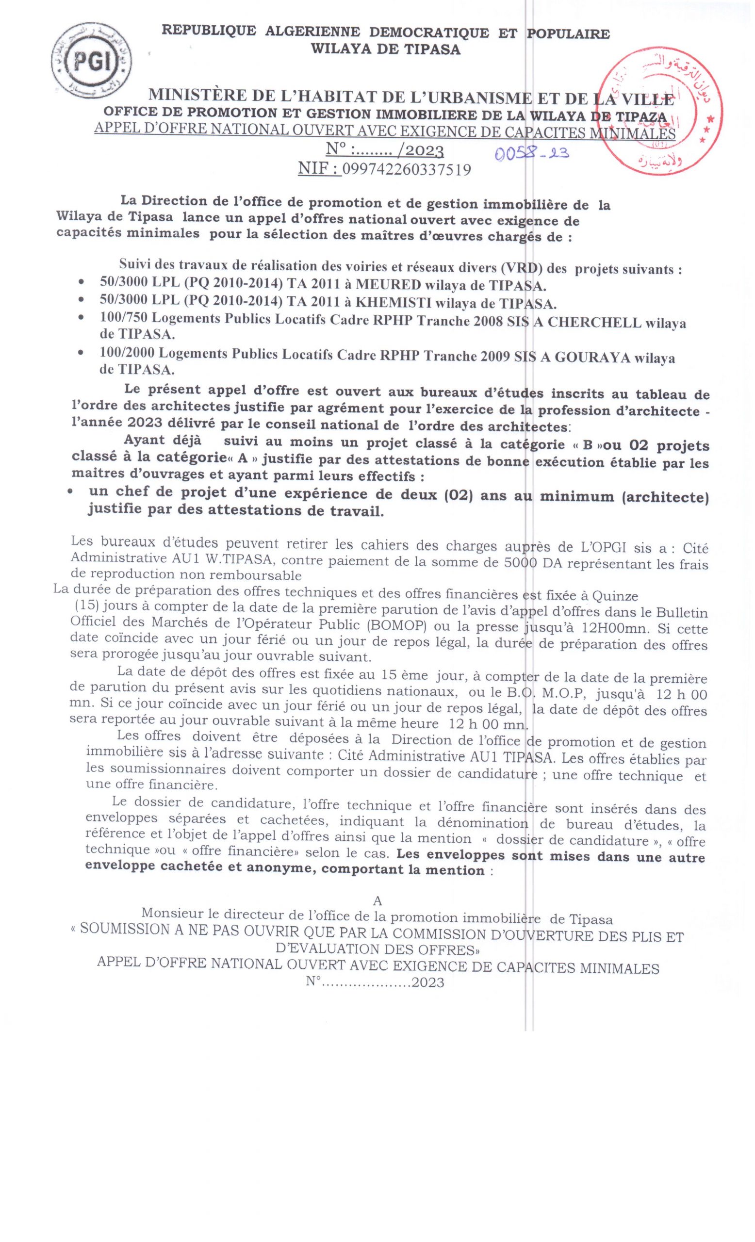 إعلان عن استشارة-مديرية الأشغال العمومية
