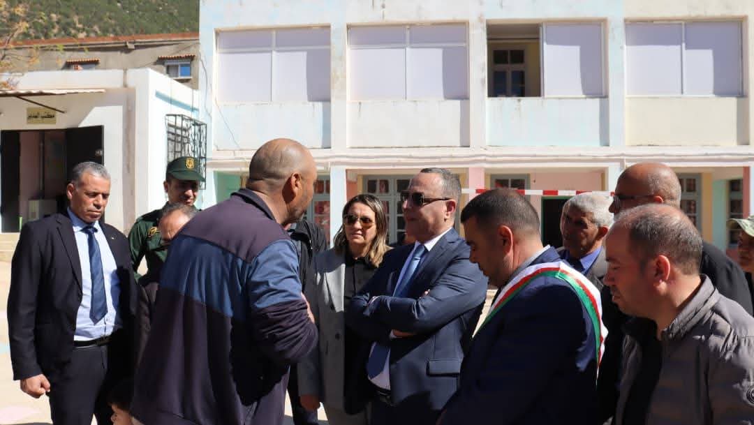 - معاينة مشروع إنجاز مطعم مدرسي بمدرسة محي الدين أولحسن، حيث شدّد السيد الوالي على ضرورة احترام آجال الإنجاز و ضمان توفير الظروف الملائمة لتمدرس التلاميذ.