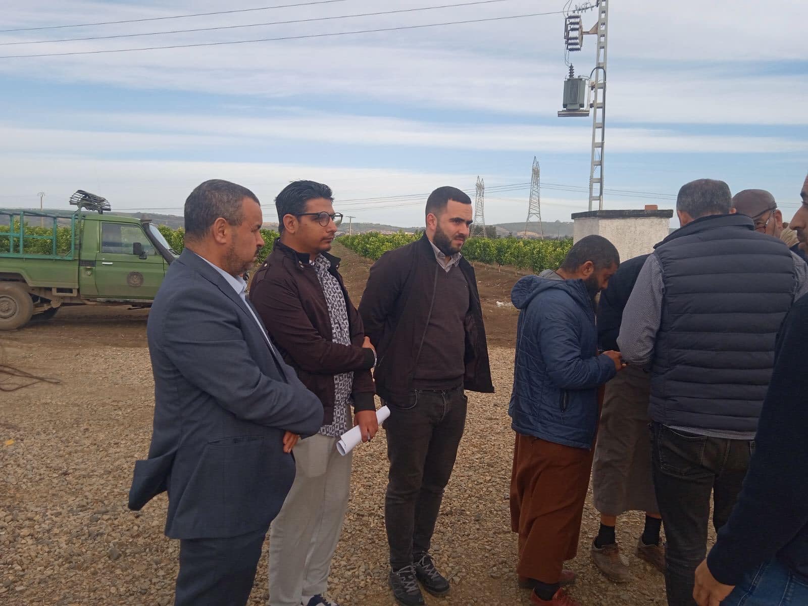 الزيارة الميدانية حضرها كل من رئيس الدائرة ، مدير الطاقة و المناجم للولاية ،مدير المصالح الفلاحية ، ممثلي المصالح التقنية التابعة لمديرية الطاقة و المناجم و كذا مصالح سونلغاز ، رؤساء الأقسام الفرعية للمصالح الفلاحية و الفلاحين الذين يمس المشروع اراضيهم و كذا المؤسسة المنجزة للمشروع .