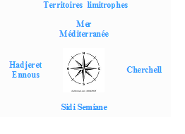 Son chef lieu à environ 32 km à l'Ouest de Tipaza et à 7 km au Sud-ouest de Cherchell .