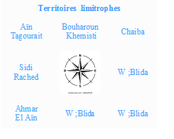 Son chef lieu est à environ 25 km à l'Est de Tipaza, à 16 km au Nord-ouest de Blida et à 39 km au Nord de Médéa.