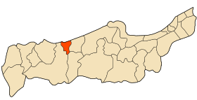 Son chef lieu est à environ 40 km à l'Ouest de Tipaza et à 14 km au Sud-ouest de Hadjeret Ennous.